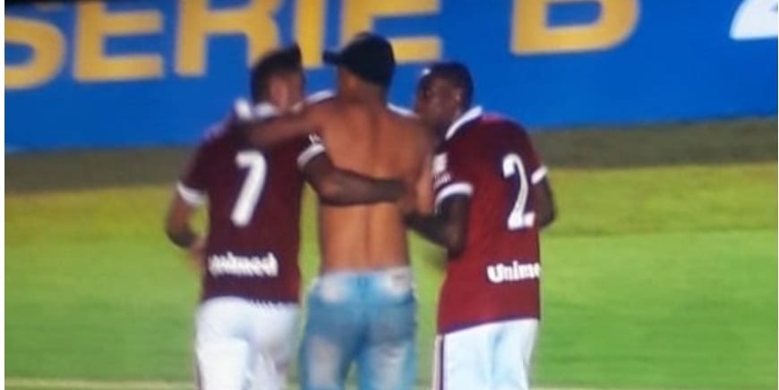 “Cumpro informar, que aos 43 minutos do segundo tempo, paralisei a partida em razão de uma invasão de um torcedor sem camisa que se dirigiu em direção a um dos atletas da equipe Vila Nova FC, que se encontrava no meio de campo, em seguida o torcedor se ajoelhou em frente ao mesmo jogador como uma forma de protesto, informo ainda que o mesmo torcedor não causou nenhum transtorno ou problemas aos atletas, e se retirou rapidamente a pedido dos jogadores da equipe do Vila Nova FC.”