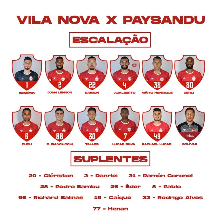Pelo complemento da segunda rodada da Série C do Campeonato Brasileiro, Vila Nova medirá forças contra o Paysandu, às 17h, no OBA. Diante disto, o técnico Bolívar definiu a escalação do Tigrão para o confronto contra a equipe do Belém-PA.