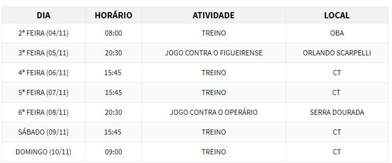 Confira a programação da semana do time do Vila Nova