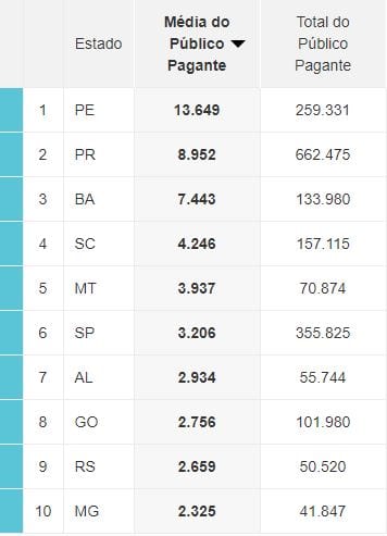 Trazemos para o leitor o ranking de público pagante por estado da série B.