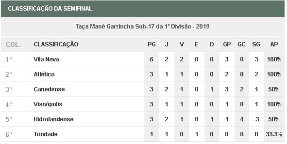 Com a vitória o Vila Nova segue 100% na competição com 2 jogos e 2 vitória e lidera o grupo A da Taça Mané Garrincha: