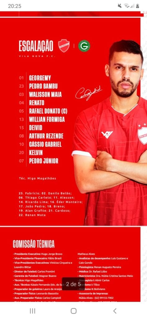 Então, o Vila Nova será comandando por Higo Magalhães e ele divulgou os 11 titulares para o clássico: