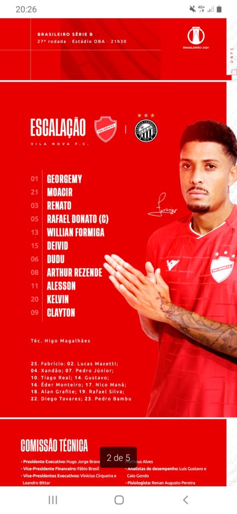 Logo mais, Vila Nova entra em campo em mais um jogo pela Série B do Campeonato Brasileiro, válido pela 27ª rodada da segundona. Para o jogo desta noite, o técnico Higo Magalhães confirmou o time titular que vai a campo em mais um duelo pelo certame nacional.