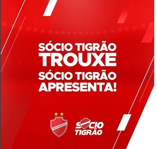 Atenção, Sócio Tigrão Ouro! O Vila Nova irá sortear amanhã às 09h um colorado deste plano para apresentar amanhã a tarde, no OBA, a nova contratação colorada. Uma forma singela de retribuir quem diretamente contribuiu para o que o Tigrão pudesse se fortalecer ainda mais“, diz.