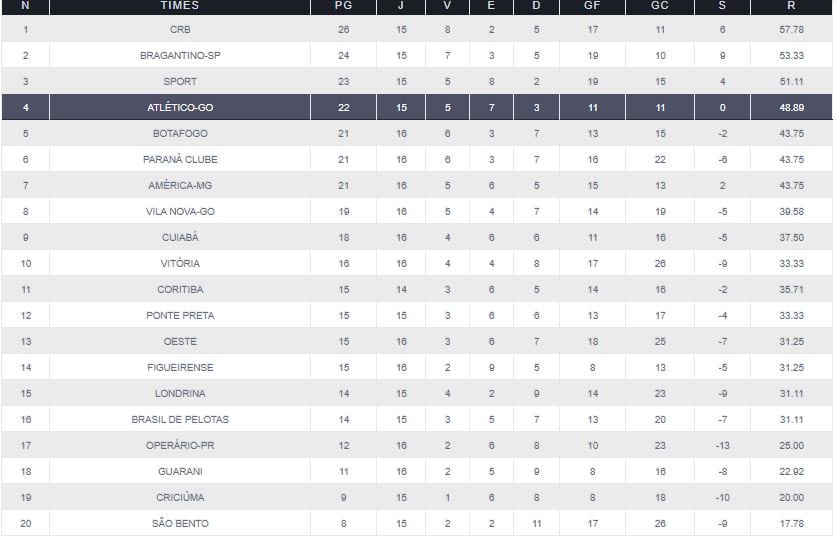 Na tabela de classificação, o Vila Nova permaneceu na 18ª colocação da Série B do Brasileirão com 31 pontos conquistados em 31 jogos disputados. No momento, o Tigrão tem seis vitórias, empatou as outras treze partidas e perdeu os outros doze confrontos.