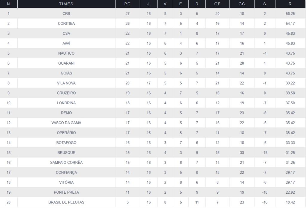 Os principais times que aparecem na parte de cima são: CRB, Coritiba, CSA e também o Avaí, que são os melhores times que atuam melhores como visitante e longe de seus principais domínios.