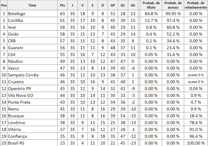 Com relação aos times que lutam pelo acesso são: Botafogo, Coritiba, Avaí e também o Goiás, que estão no G-4 da Série B do Campeonato Brasileiro e tiveram seus dados atualizados na íntegra.