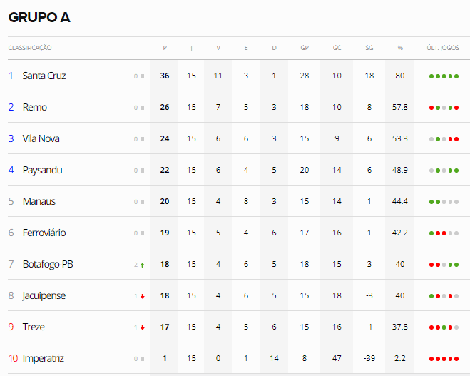 Série C: veja como fica a classificação do Vila Nova após o término da 15ª rodada