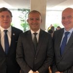Presidente do Vila Nova posa ao lado dos mandatários da FIFA e da Conmebol